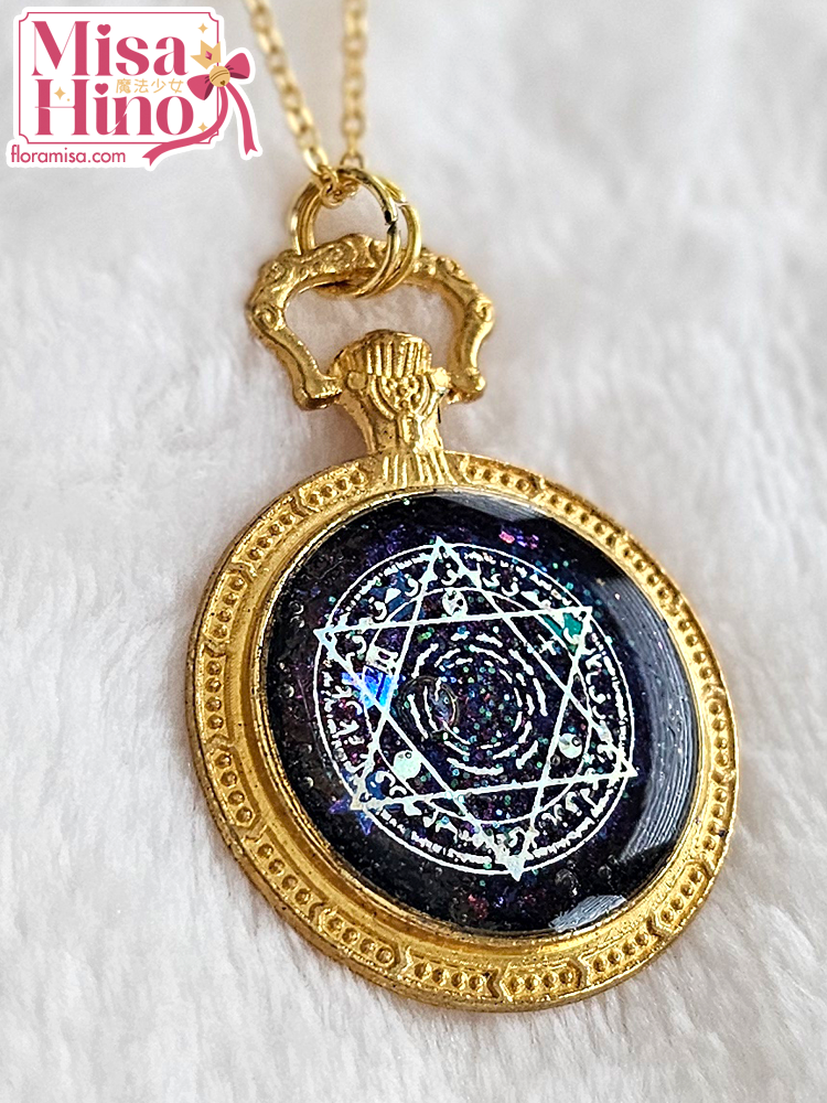 An imitation pocket watch with a magic circle. This charm comes as a necklace by default. Please see add-ons category for additional options.