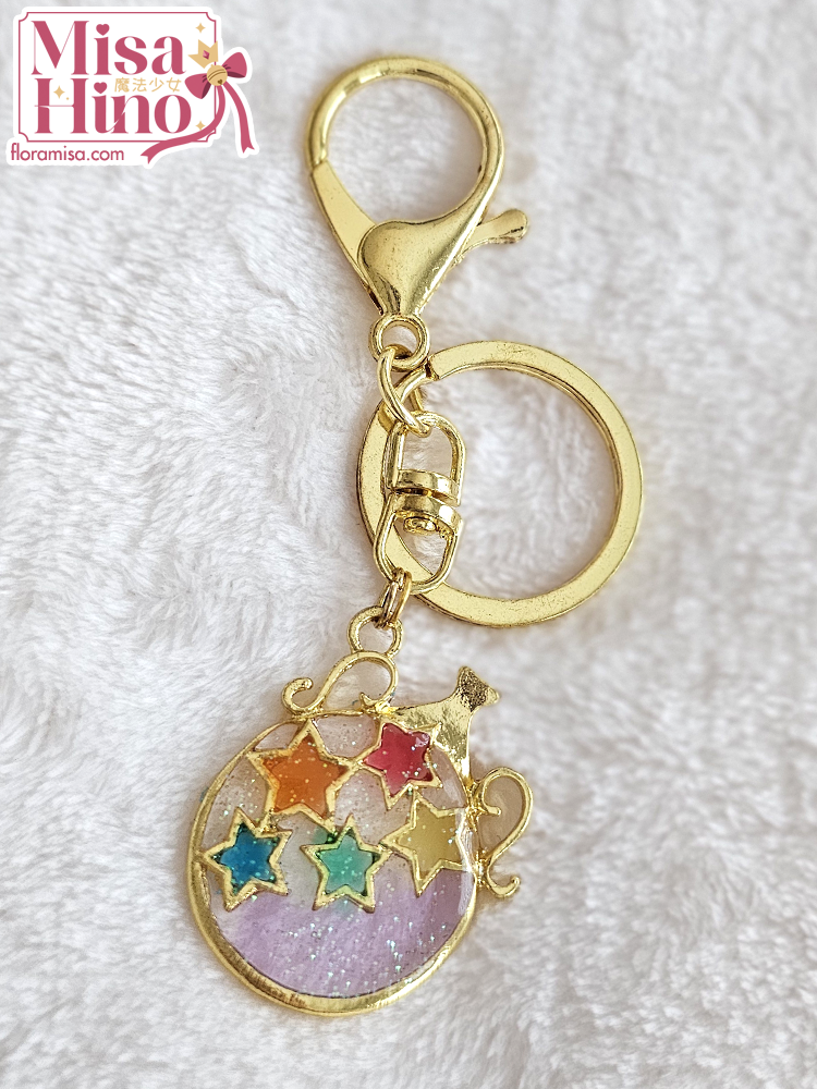 Rainbow jar resin charm in gold. It comes as a keychain by default. Please see add-ons category for additional options.