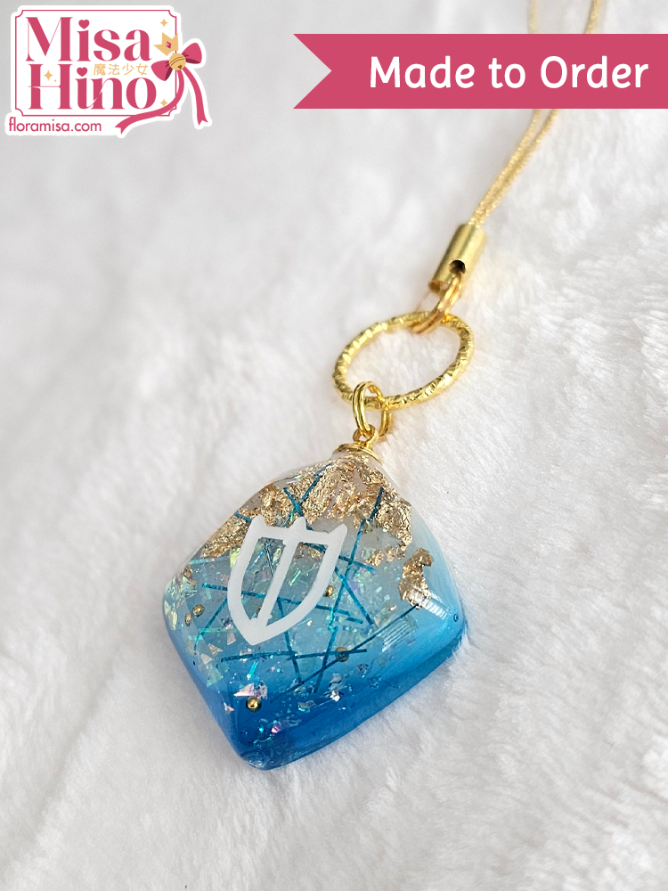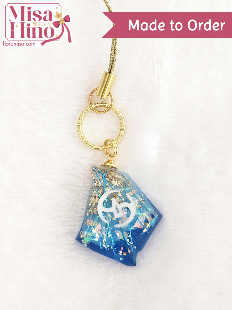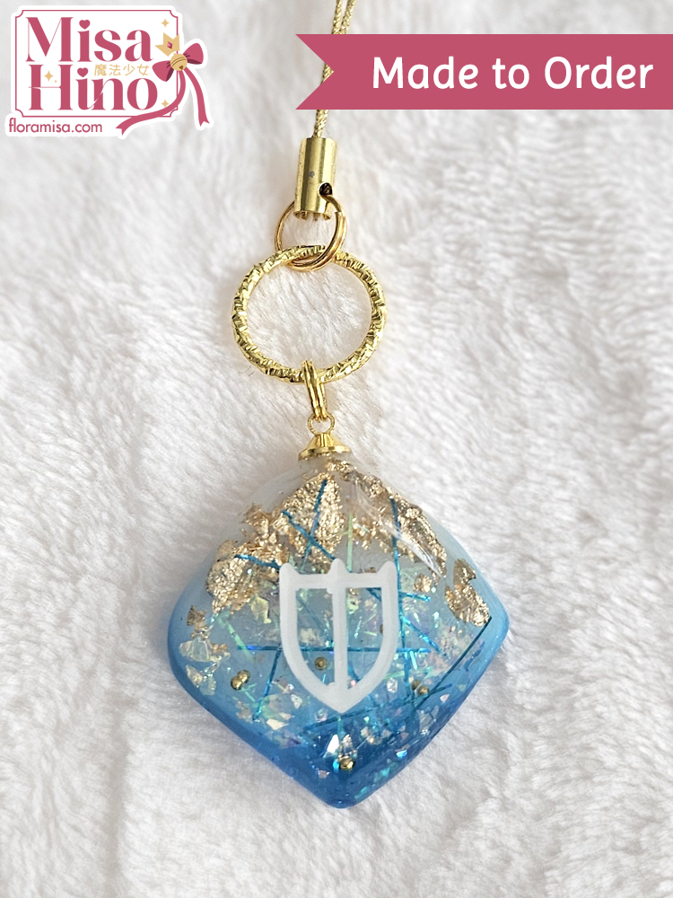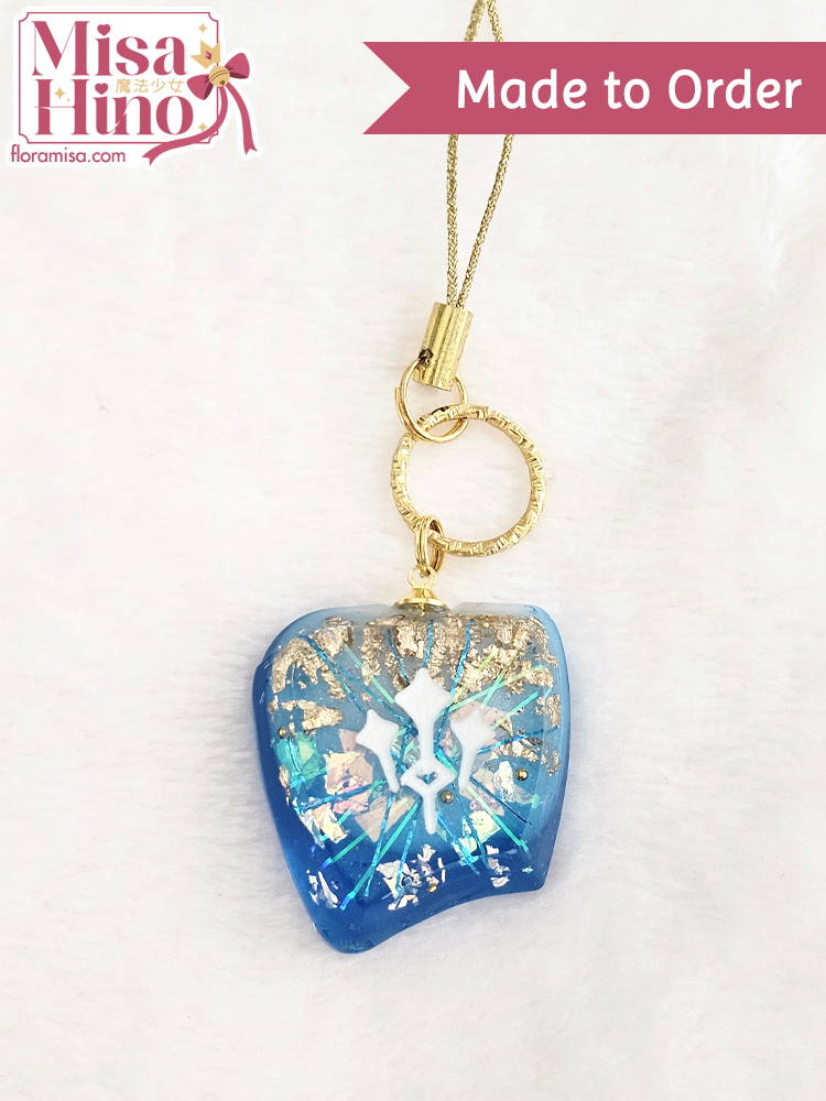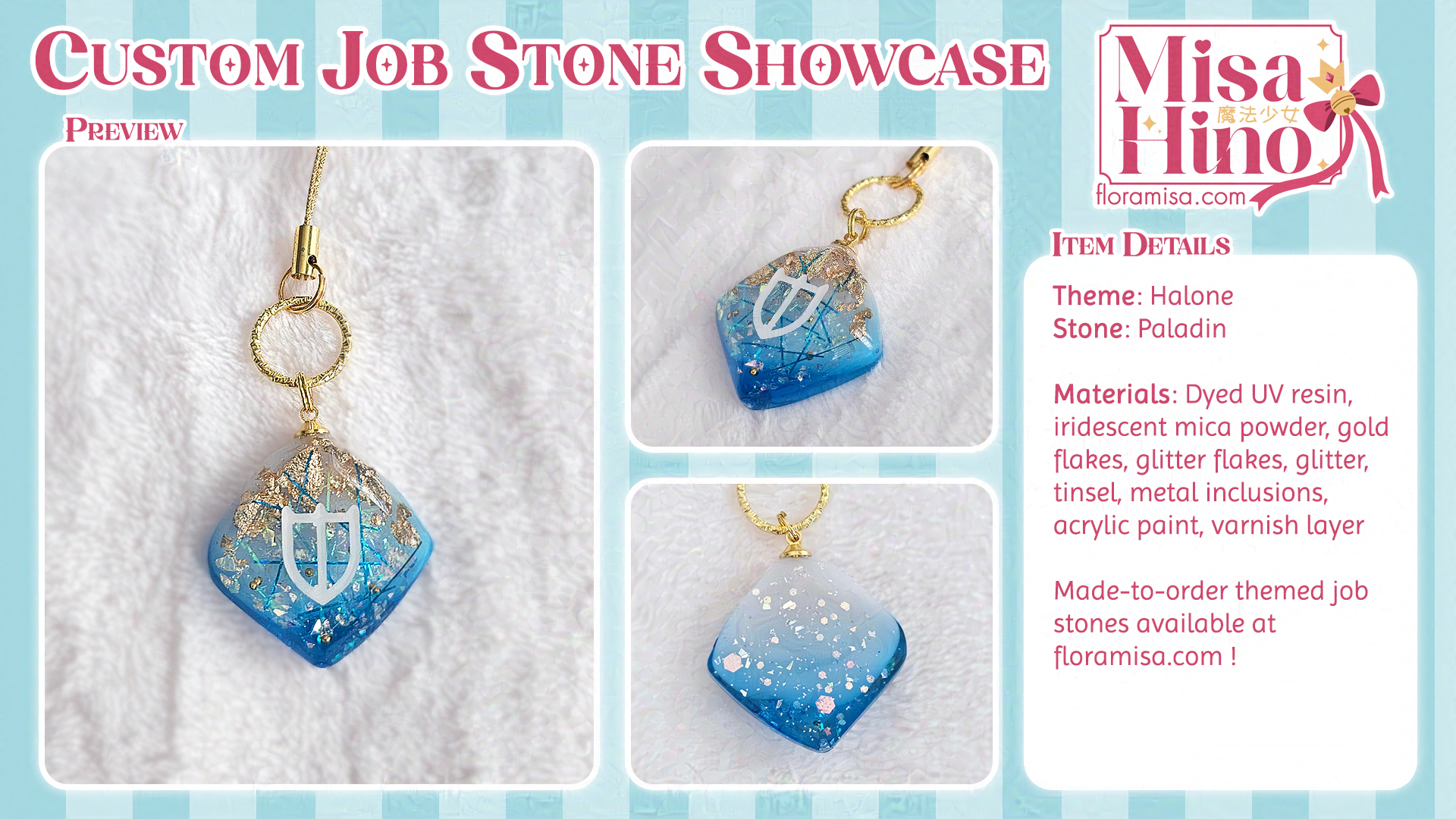 A Halone inspired custom FFXIV job stone featuring the white/blue from her character design + gold inclusions.