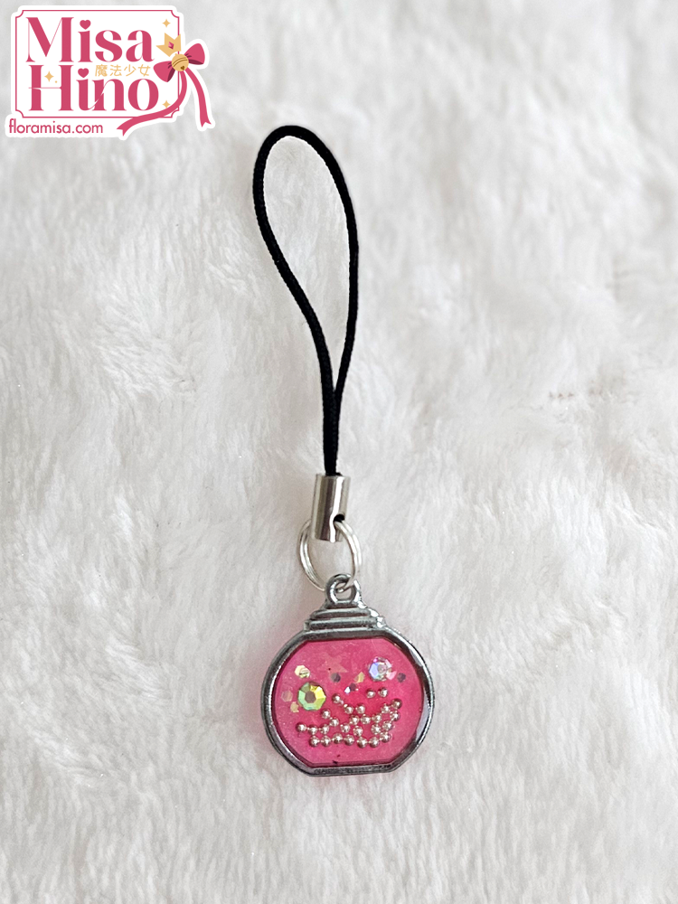 A small pink jar with glitter, silver bubbles, and "fairies" (crystals). This charm comes as a cellphone charm by default. Please see add-ons category for additional options.