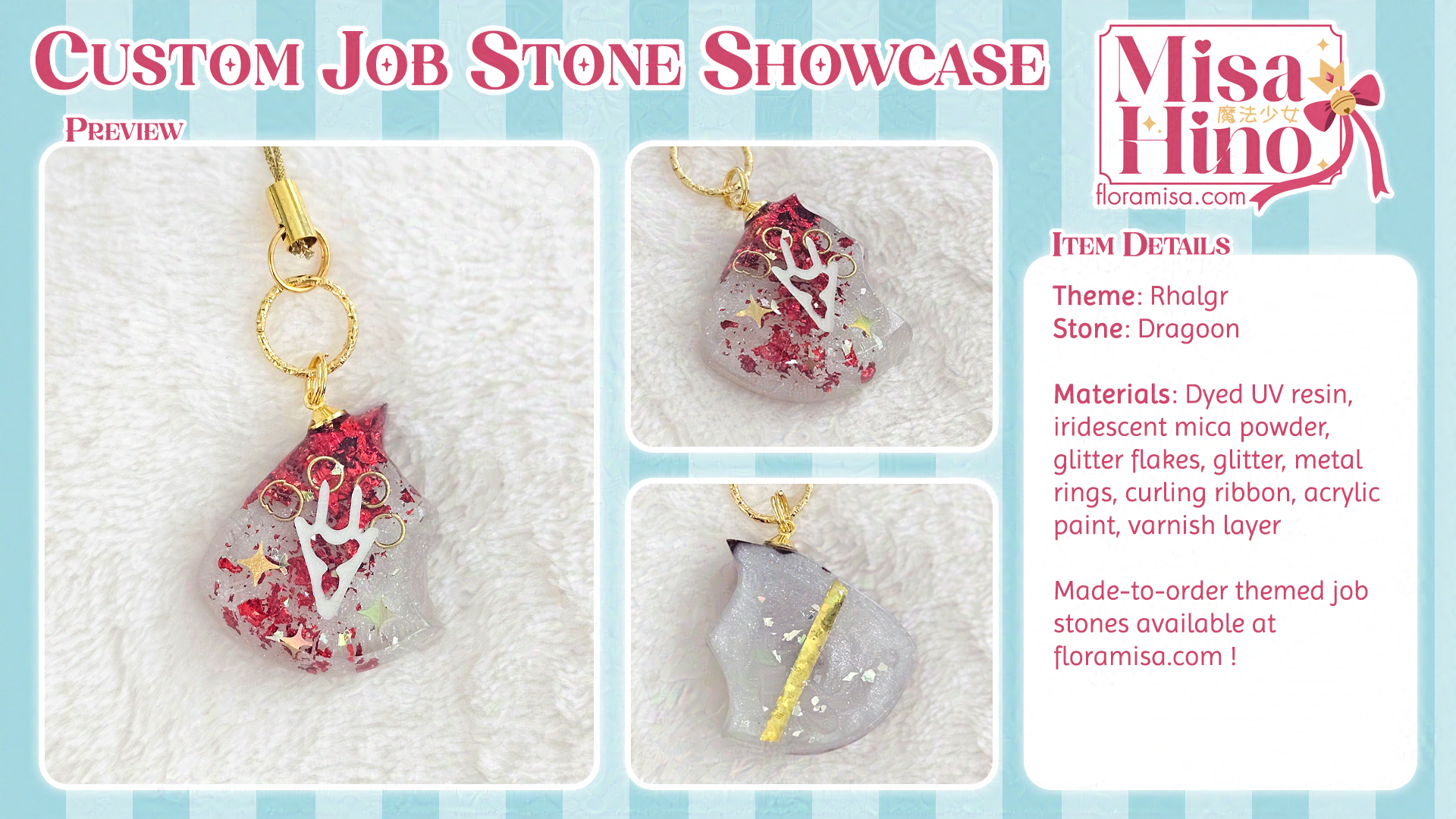 A Rhalgr inspired custom FFXIV job stone featuring the white/gold (+ red "sash") from his character design + gold inclusions.
