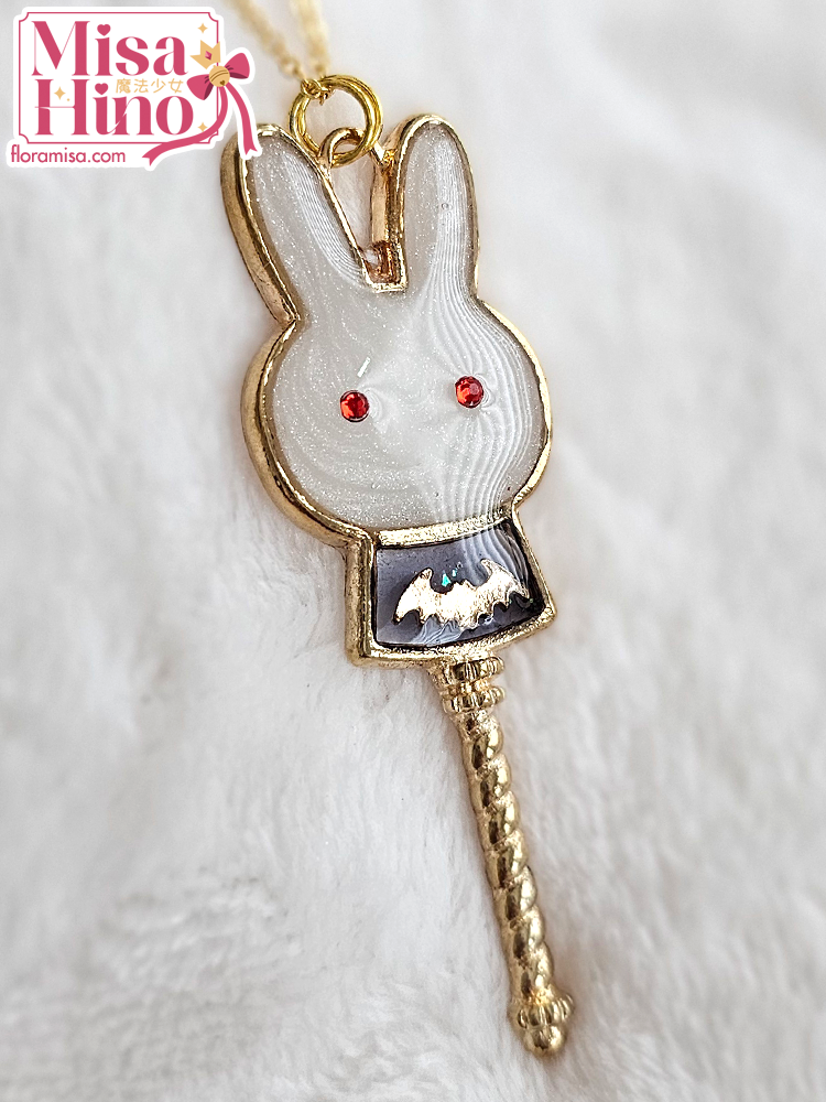 A pearly white "Bunnicula" (bunny x Dracula) wand. This charm comes as a necklace by default. Please see add-ons category for additional options.